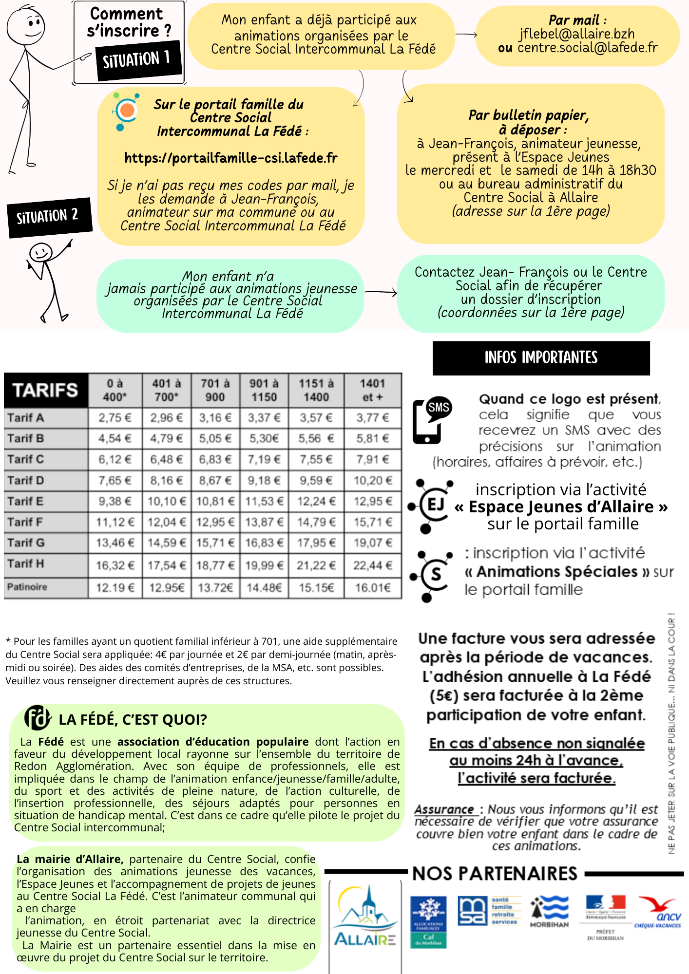 Courriel : centre.social@lafede.fr ou jflebel@allaire.bzh