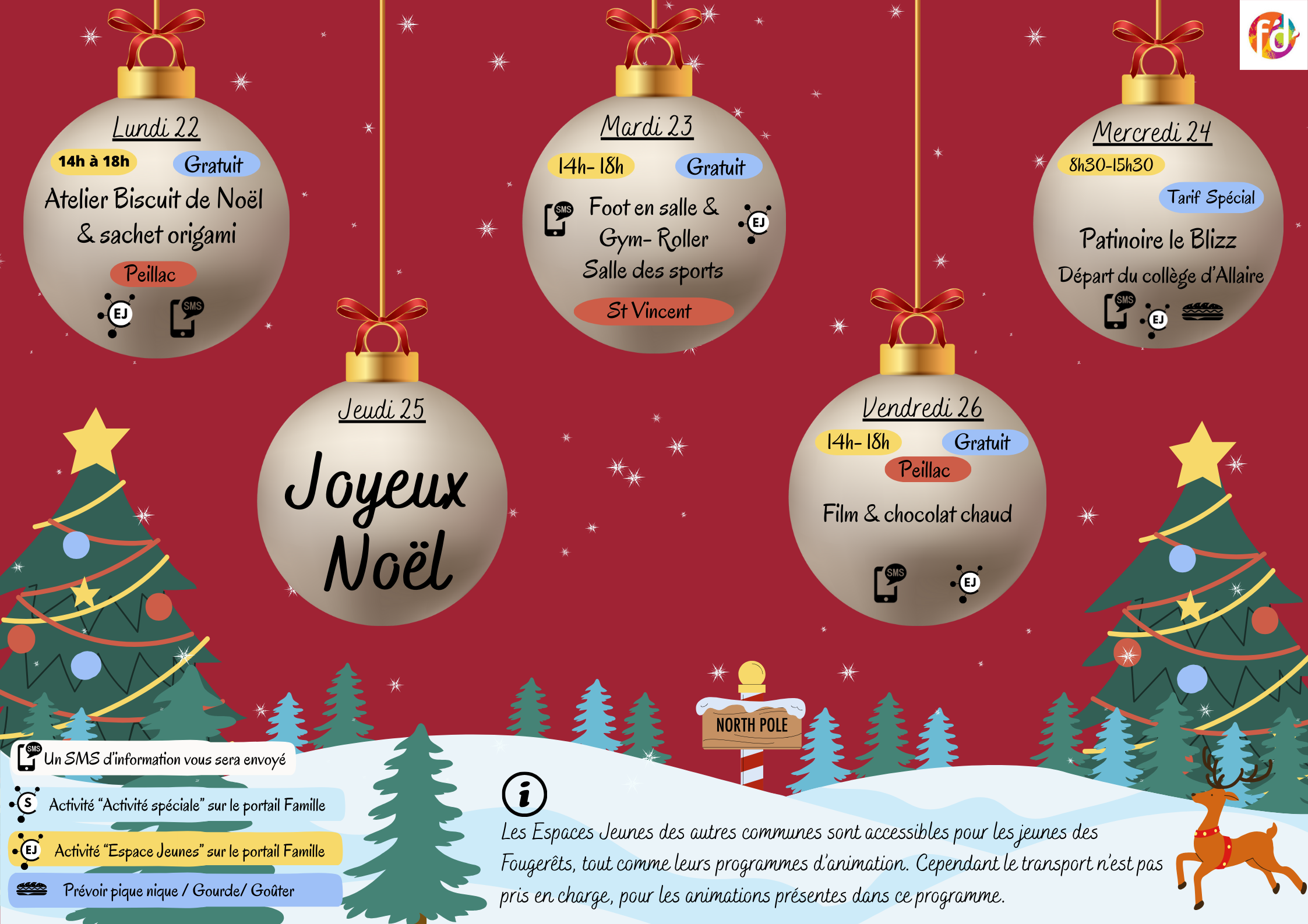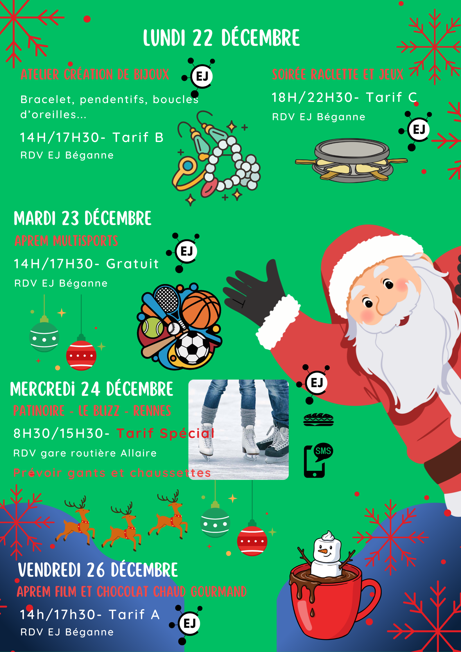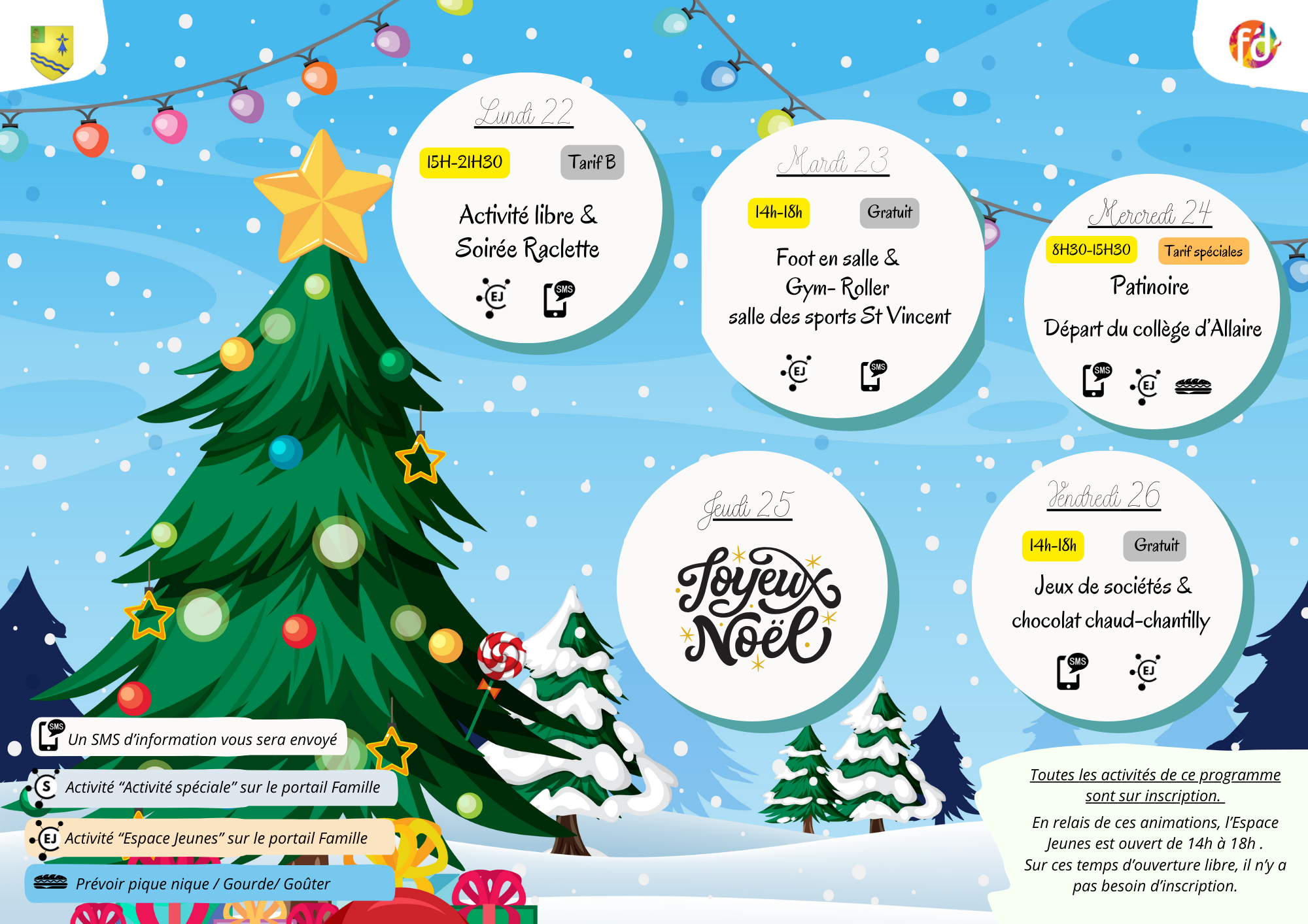 Programme d’animations vacances (fermeture à Noël) : ouvert du lundi au vendredi, de 14h à 18h (selon le programme d’animations).