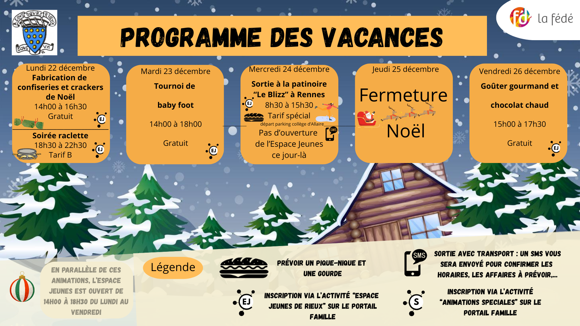 Courriel : centre.social@lafede.fr ou espace-jeunes@mairiederieux.fr